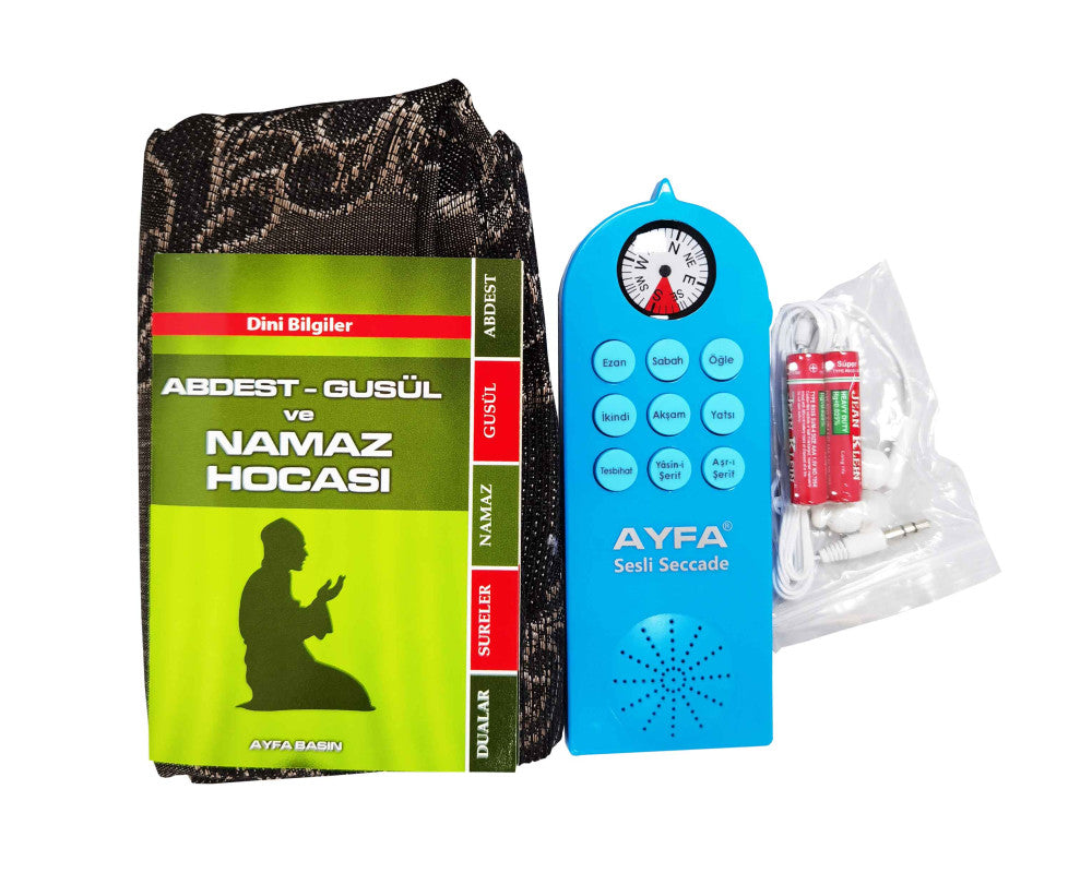 Dini Bilgiler kitapçığı hediyeli namaz öğreten sesli seccade. Pusulalı, kulaklıklı set halindedir, 2 adet kalem pil ile çalışır. Ürün 1...